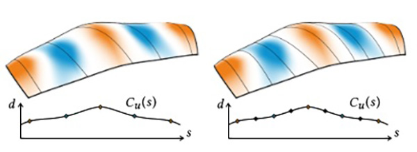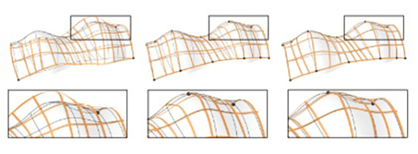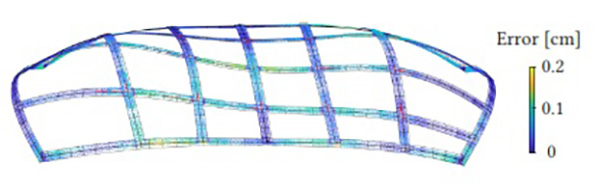 Elastic geodesic grids can only approximate surfaces, that are “claddable” by unique shortest geodesics. If this is not the case, our smoothing algorithm ensures cladding, but surface details could be lost. Also the number and the density of members influences the representable shapes.