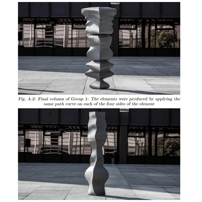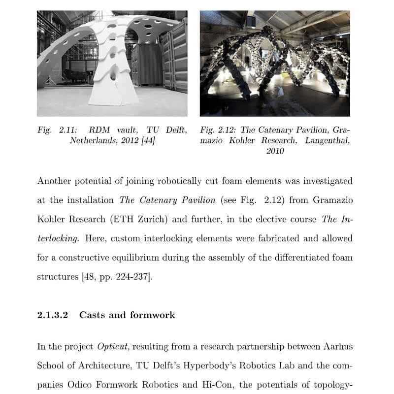This thesis by Romana Rust, develops around a multi-robotic hot-wire cutting technique, that allows to significantly expand the set of possible hot-wire cutting geometries. In contrast to standard computer-controlled hot-wire cutting processes, in which the cutting medium remains straight, this technique modulates the curvature of the hot-wire, which adopts itself against the resistance of the processed material.