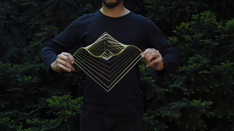 A Kickstarter campaign introduces a five-dimensional sculpture said to be inspired by mathematics and the Fibonacci sequence. Square Wave, the first in a collection from artist Ivan Black and Atellani, is an object constructed out of 21 precisely bent and connected metal rods with no hidden mechanical components.