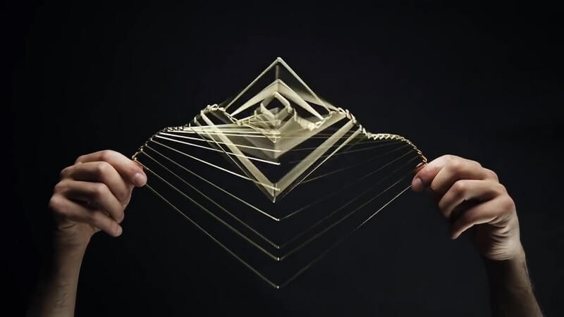 A Kickstarter campaign introduces a five-dimensional sculpture said to be inspired by mathematics and the Fibonacci sequence. Square Wave, the first in a collection from artist Ivan Black and Atellani, is an object constructed out of 21 precisely bent and connected metal rods with no hidden mechanical components.