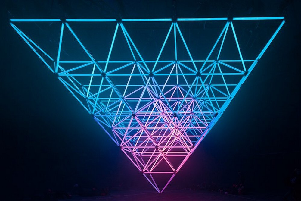 TETRO+A and WHITEvoid present its immense light structure ‘STALACTITE’ which floats above the audience of the bright brussels festival 2018 in belgium. it invites to ‘switch off’ the irrelevant and concentrate on the bliss of the pure audio-visual statement. Underneath the monumental installation created by christopher bauder and boris divider, people will gather like drips fallen from the stalactite, forming a vivid counterpart to the perfectly plain and abstract architectural design.
