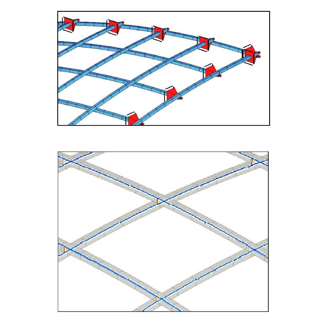 There are three tried and tested ways to erect a strained grid shell: ‘lift up’, ‘push up’ & ‘ease down’. The practicality of each method and the effect on structural behaviour varies.