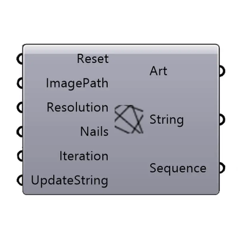 String Art Generator by Yiran is a grasshopper plugin which generates a string art sequence based on an input image. You can use this plug-in to make your own string art. Click the “reset” button to clear the error every time opening the file. Disable “update” to display and view the input picture, and enable “update” to allow calculation.