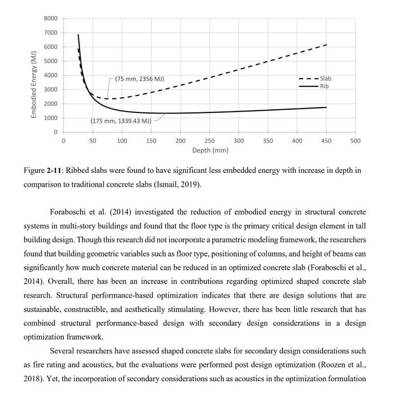 Concrete systems are often overdesigned in terms of material when using common construction and fabrication practices, resulting in a larger building embodied carbon footprint than necessary. As advanced construction technology and fabrication methods have emerged alongside performance-based design methods, new design possibilities can be found through computational methods such as structural optimization.