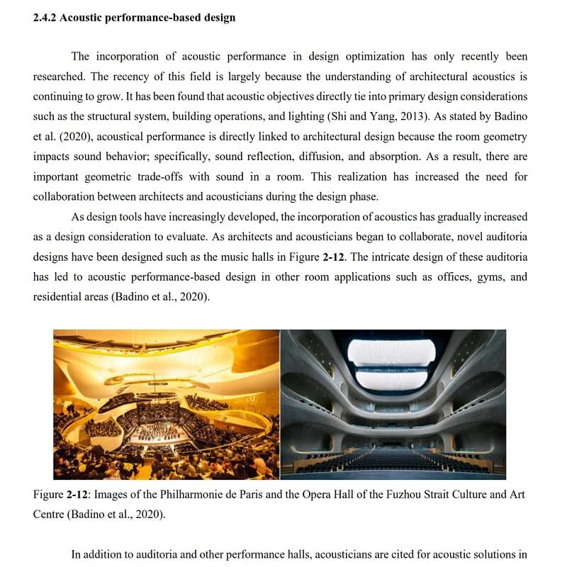 However, structural optimization procedures often neglect secondary design objectives such as acoustics during the computational process. Acoustic-based performance objectives are directly impacted by structural shaping due to the overlap of objectives such as structural mass, which relates to sustainability. Sound phenomenon such as speech can be easily transmitted through lighter, thinner elements compared to heavier, stiffer elements.
