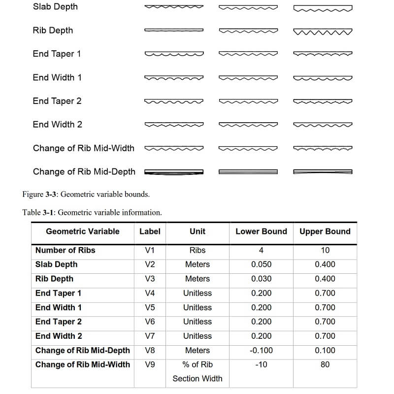 The structural model and acoustic model identify slab designs that meet all the structural and acoustic checks. Following initial design space exploration, multi-objective optimization (MOO) was used to improve upon the resolution of obtaining the best shaped slabs in the design space while confirming the general structural-acoustic trends from LHS.