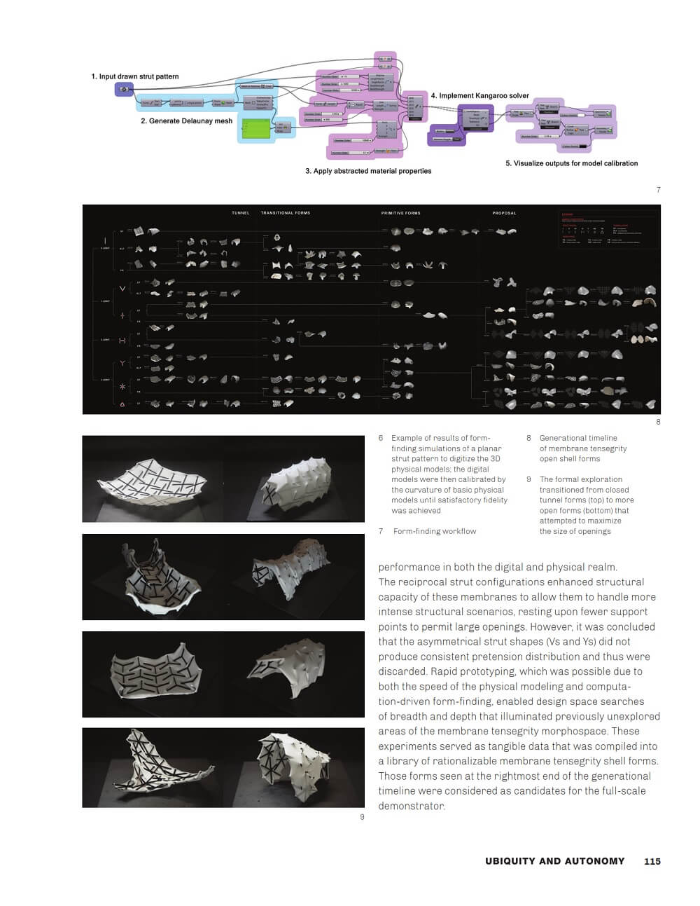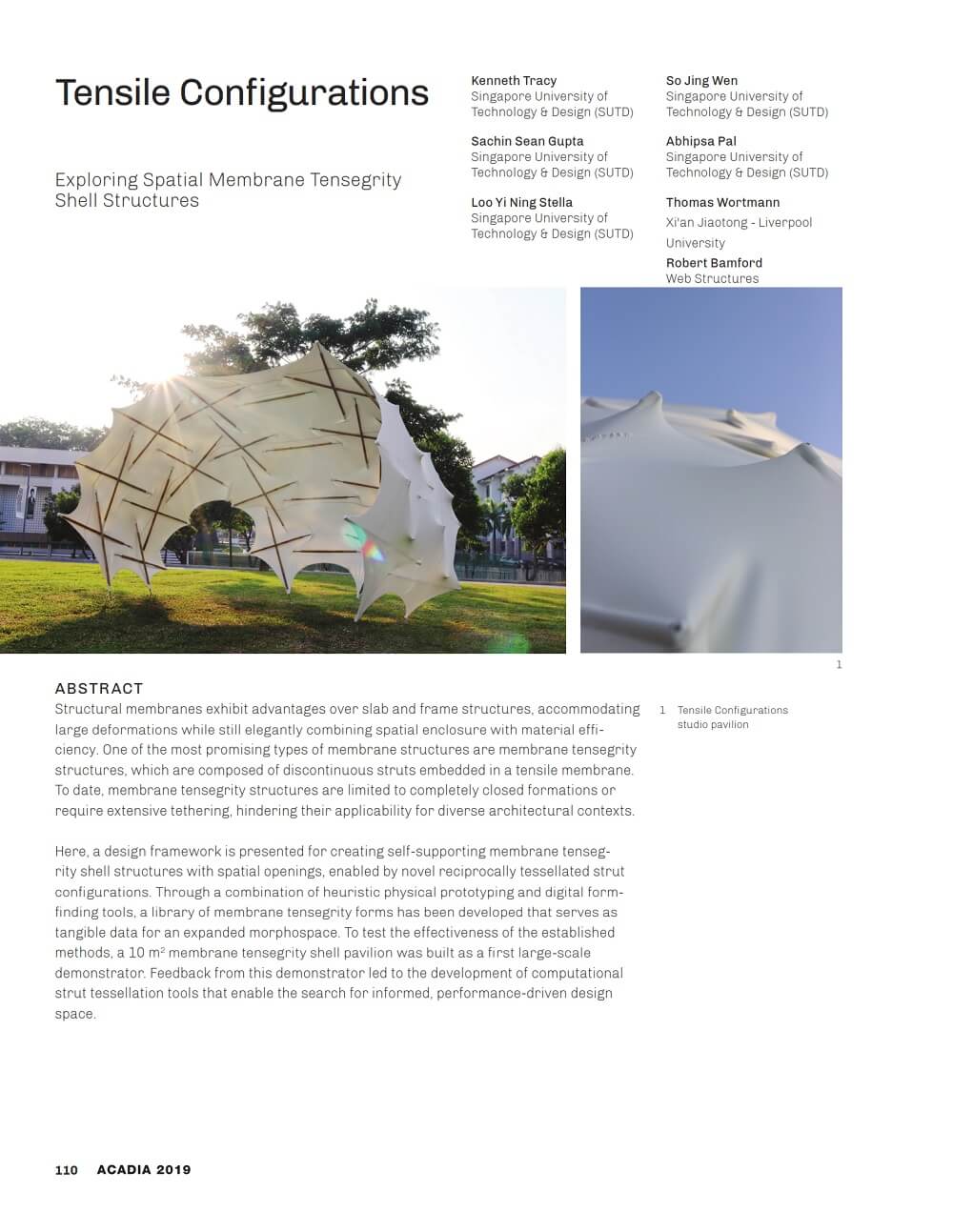 In this article by Kenneth Tracy, So Jing Wen, Sachin Sean Gupta, Abhipsa Pal, Loo Yi Ning Stella, Thomas Wortmann and Robert Bamford; a design framework is presented for creating self-supporting membrane tensegrity shell structures with spatial openings, enabled by novel reciprocally tessellated strut configurations. Through a combination of heuristic physical prototyping and digital formfinding tools, a library of membrane tensegrity forms has been developed that serves as tangible data for an expanded morphospace.