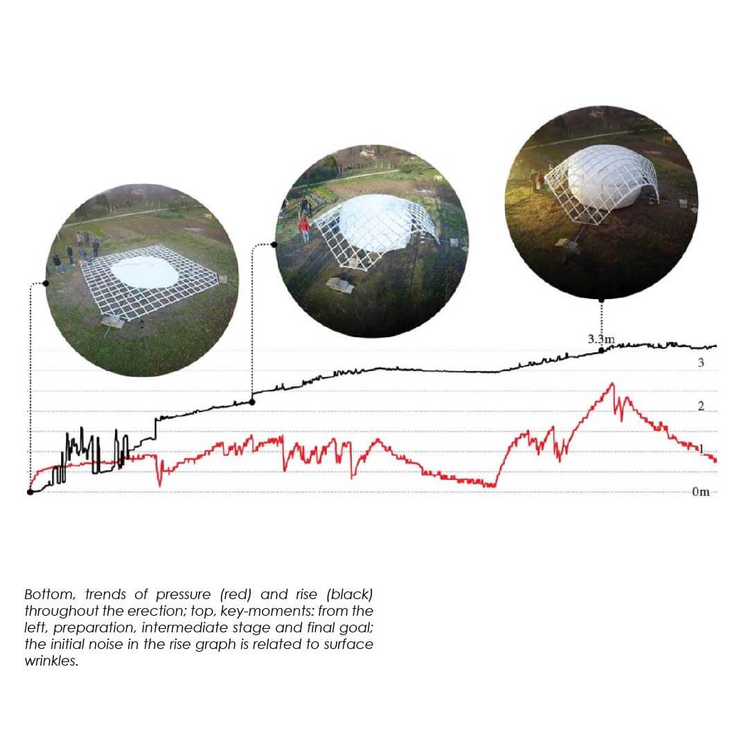 Inspired by the work of Frei Otto and Dante Bini, the technique is based on a pneumatic membrane and an Arduino® board – the former used as dynamic formwork and the latter to monitor both the structure height and the membrane pressure throughout the process.