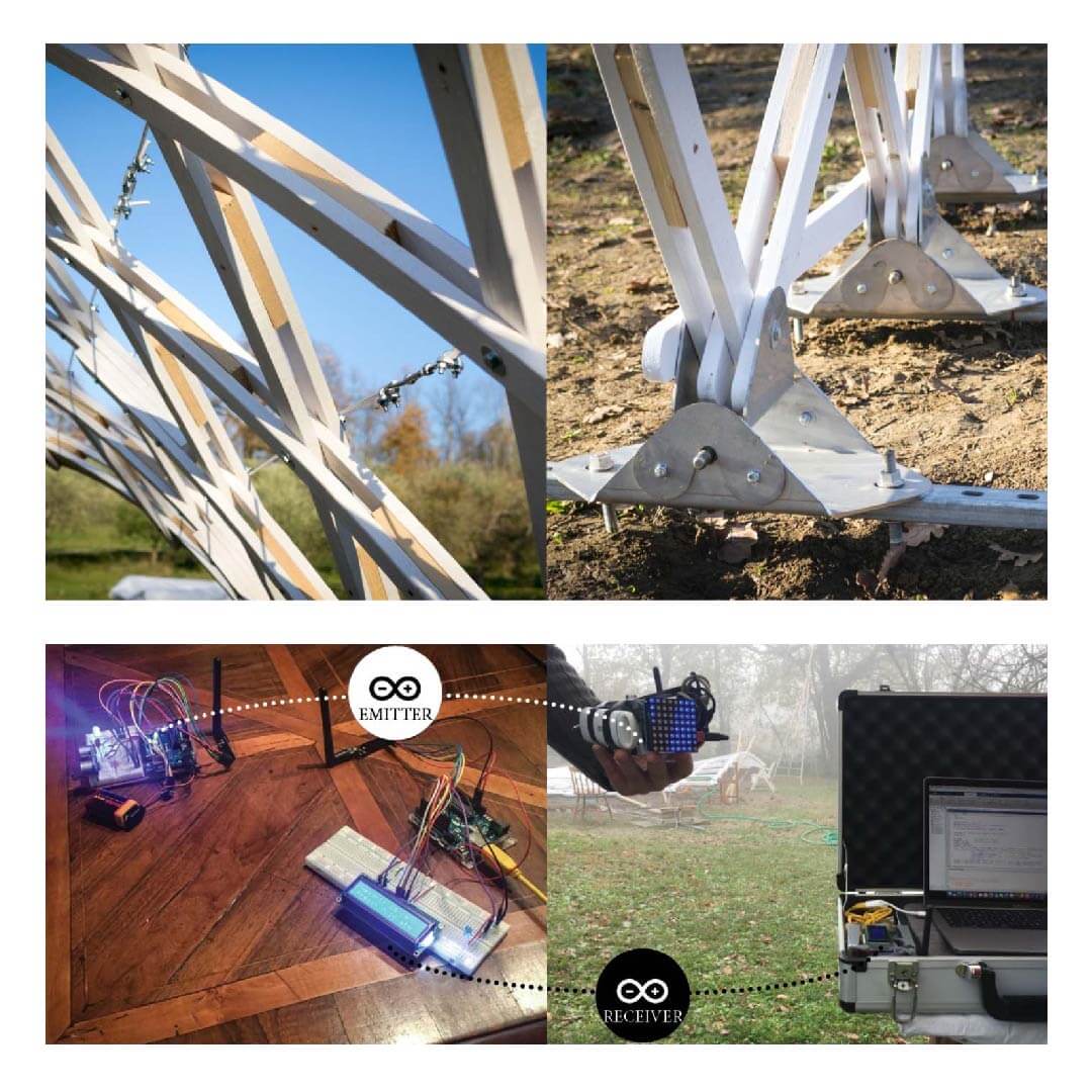 Inspired by the work of Frei Otto and Dante Bini, the technique is based on a pneumatic membrane and an Arduino® board – the former used as dynamic formwork and the latter to monitor both the structure height and the membrane pressure throughout the process.