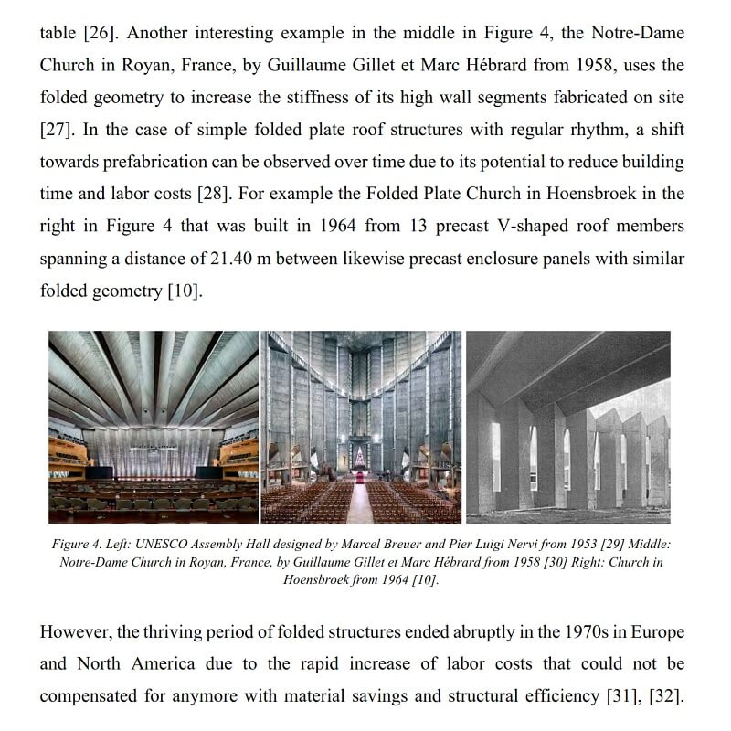 Thus, over the history of concrete different approaches evolved to increase the ecological and economical sustainability of concrete structures and this research aims to join this effort. The topic of this research by Anna Szabo is thin folded concrete structures that provide a material-efficient solution for spanning large distances due to the increased load-bearing capacity of their folded form.