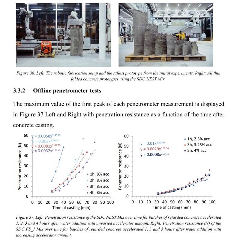 Although the model provided guidelines for material adjustments for the production of thin folded prototypes, the height and the geometries stayed limited. Thus, further research was conducted to improve the set on demand material system used in SDC with a custom dual acceleration method leading to a novel process coined as Admixture Controlled Digital Casting (ACDC).