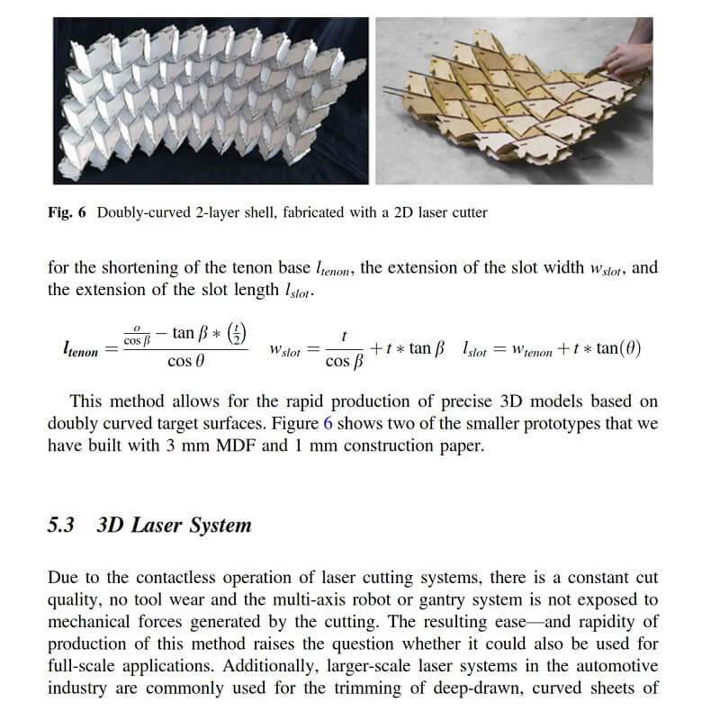 This paper by Christopher Robeller and Yves Weinand, introduces double through tenon joints, which allow for the rapid, precise and fully integral assembly of doubly-curved folded surface structures with two inter- connected layers of cross-laminated engineered wood panels.