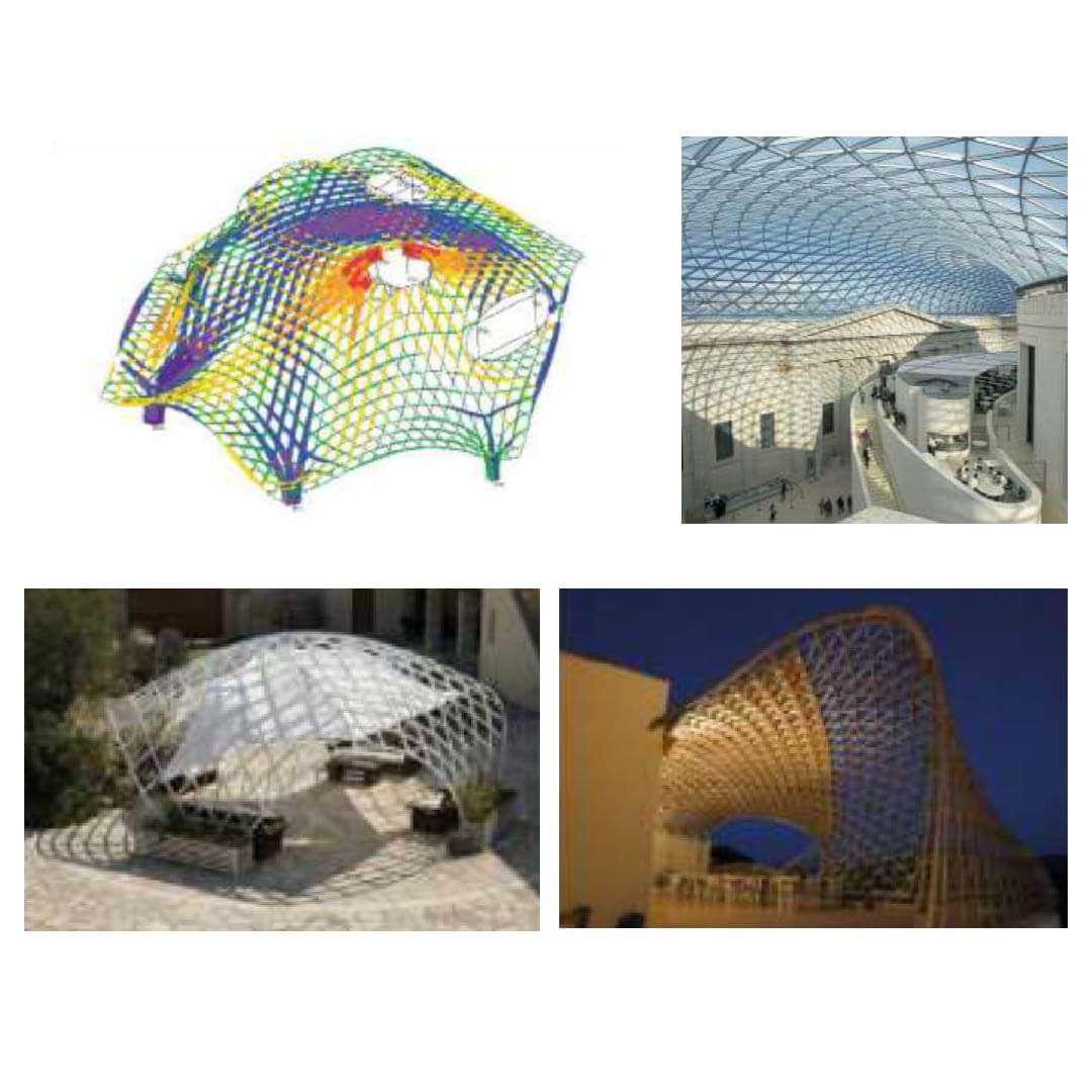 Their fundamental characteristic is the fact that gridshells are obtained by regularly perforating the membrane of a shell and concentrating material in the remaining strips.