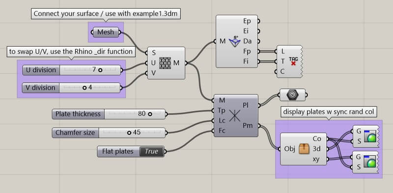 - Input Mesh output “M”: creates Meshsolids when set to true. Bake the meshes to obtain solids (closed meshes) for all 3D plates.