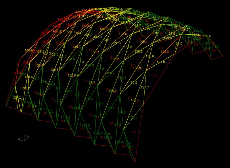 The “TPS_AnalyzeMesh” component can display essential information, such as the dihedral angles* between neighboring plates. This is important for the joining and fabrication of plates, depending on the material, assembly and production methods.