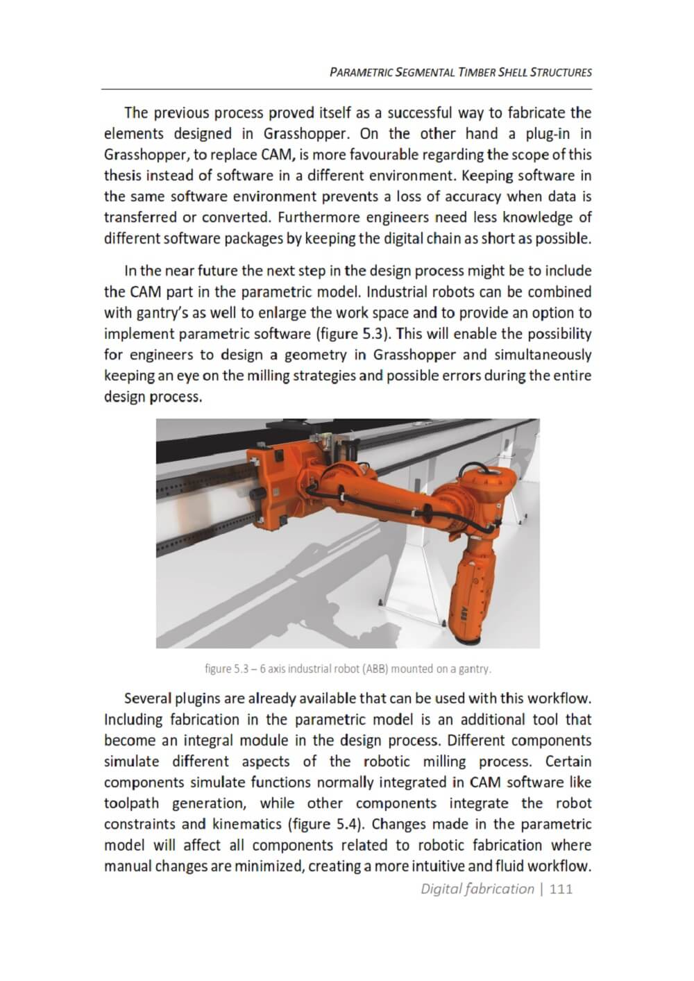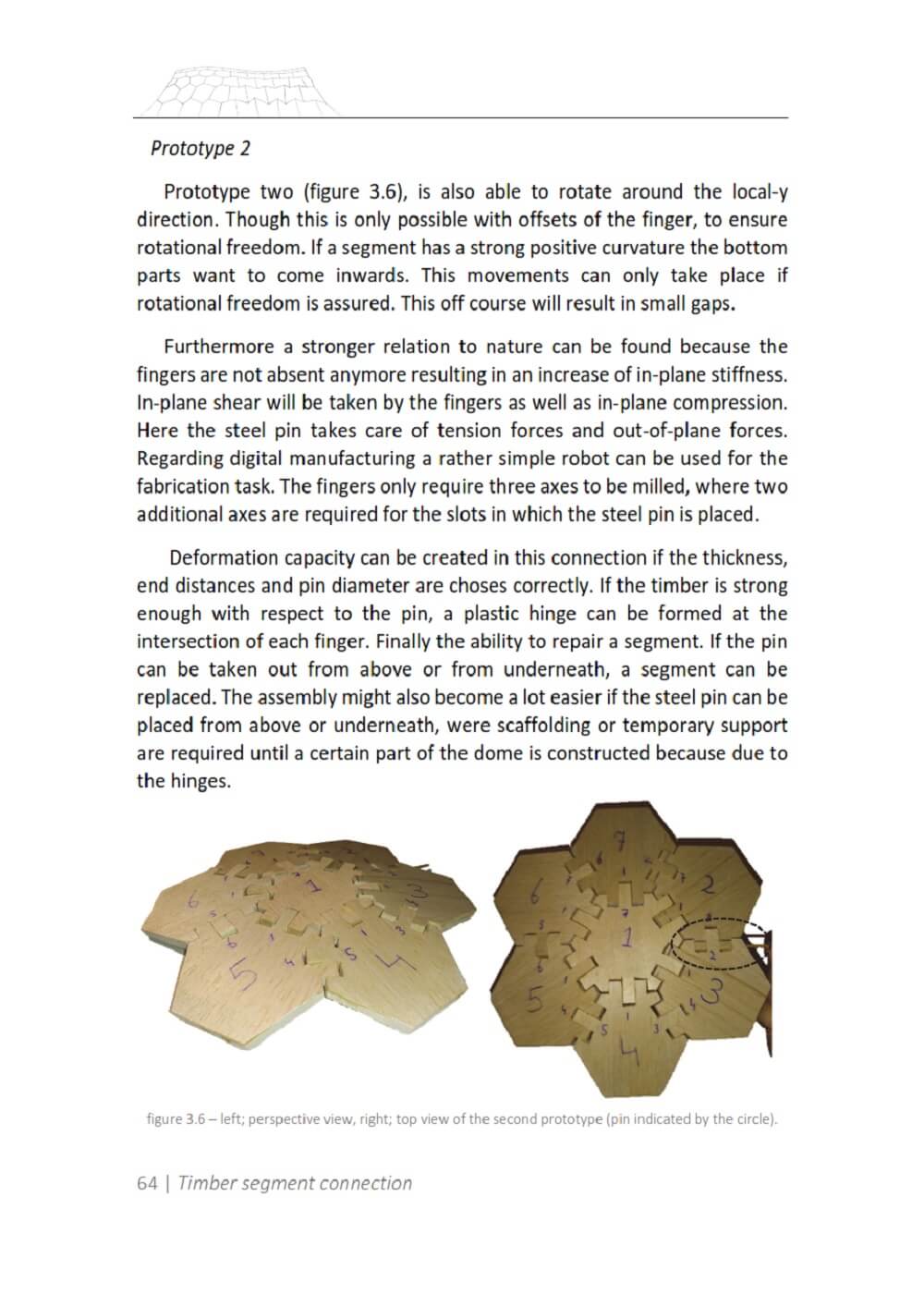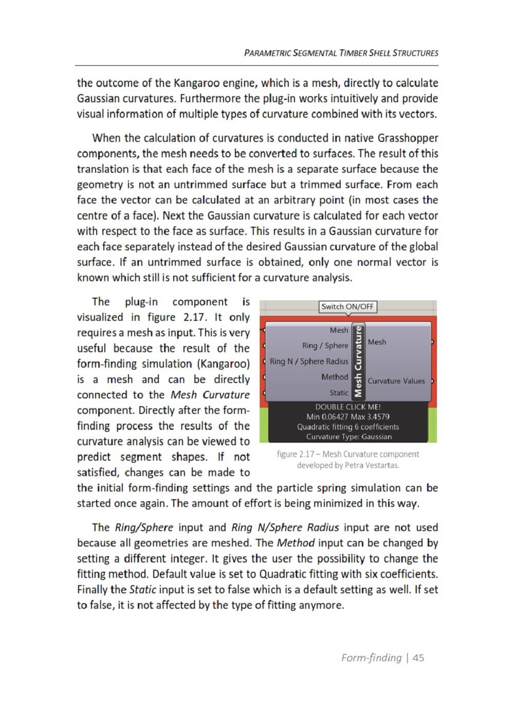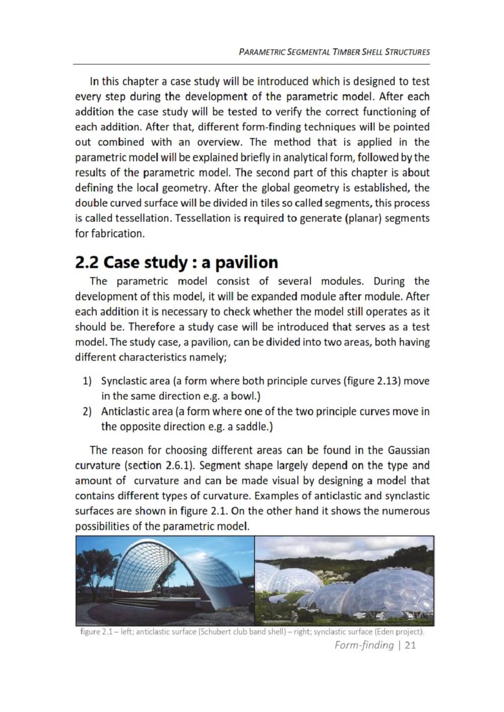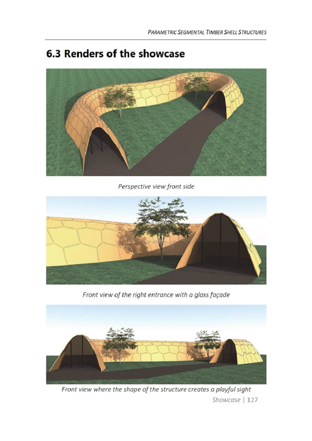 This master thesis by Sebastian de Wit is the result of a graduation project where research is conducted on parametric design of segmental timber shell structures. Throughout this report, the design process as well as the development of a parametric model to design, analyze and fabricate segmental timber shell structures is described. Furthermore a new connection is developed and tested in the laboratory to connect unique segments in order to achieve a double curved shell structure.