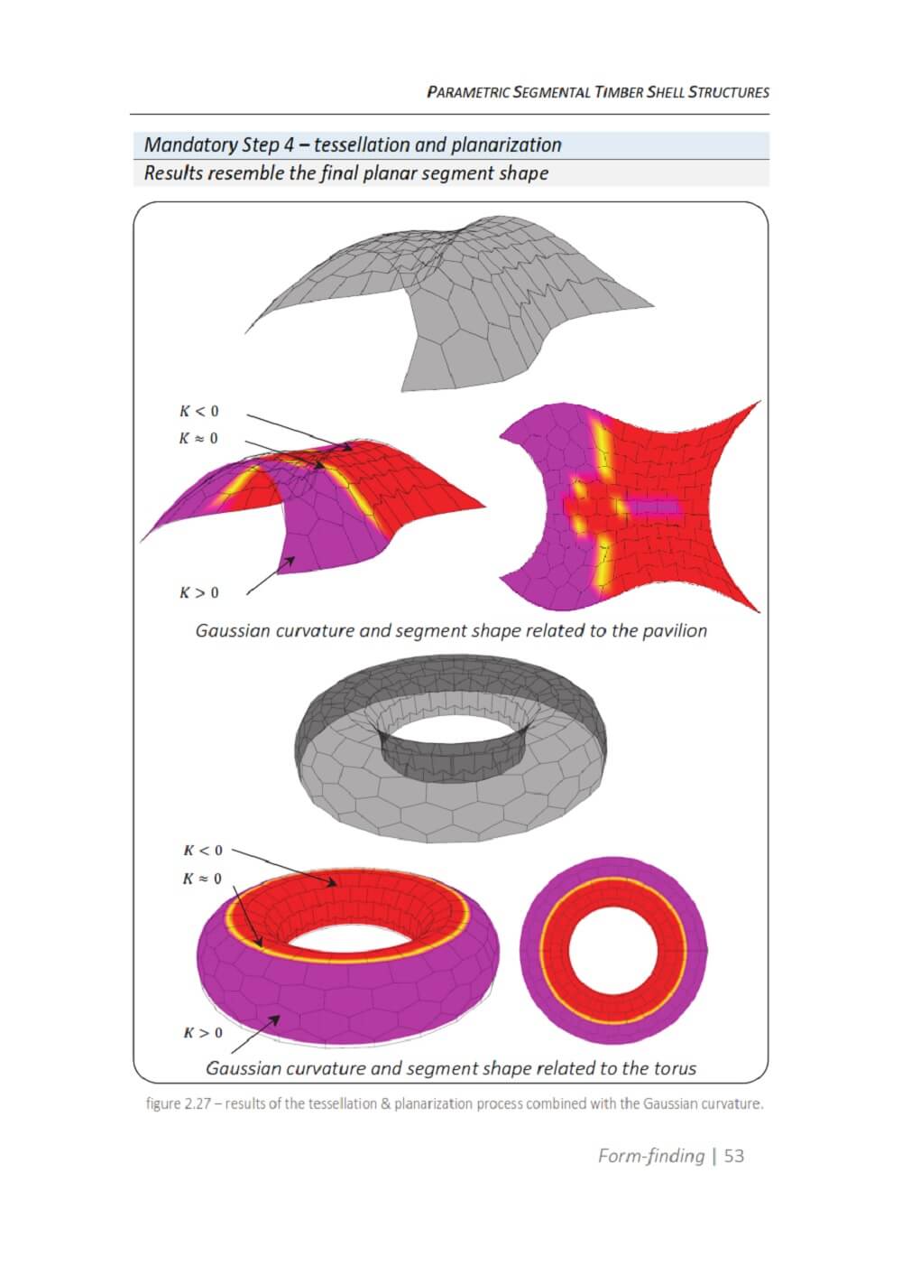 Throughout this master thesis a design process is described and introduced applicable for (double) curved geometries, which are rebuild into planar segments, analysed and fabricated. All topics related to this design process are described and provide a guideline for future research. Certain aspects improved or extended through research, so it becomes applicable for a wider variety of materials and geometries.