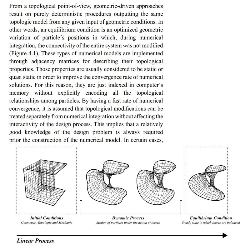 Considering that dynamic methods, such as Particle Systems (PS) and Dynamic Relaxation (DR), have become an important research trend with major advances only focused on speeding up numerical convergence, the main focus of this work by Seiichi Suzuki is to develop a comprehensive approach for enabling topologic transformations with real-time physics named topology-driven form-finding that, during conceptual stages, can serve to extend design spaces by improving modeling freedom.