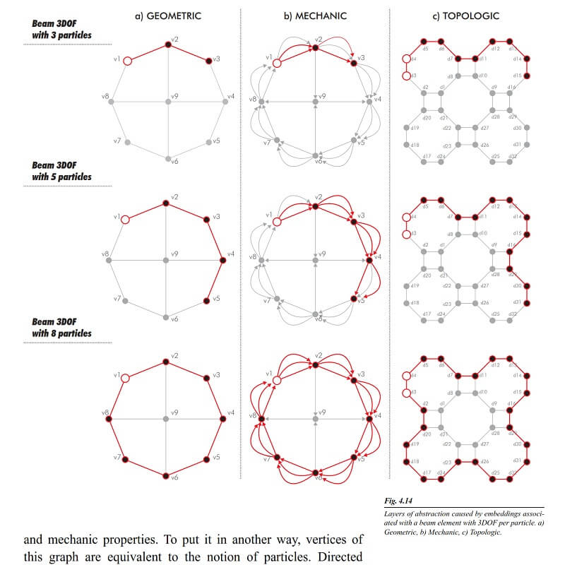 Chapter 4 introduces the theoretical framework regarding the development of a generic topologic model with geometric and mechanic embeddings for the implementation of PS models supporting topologic transformations on the fly.
