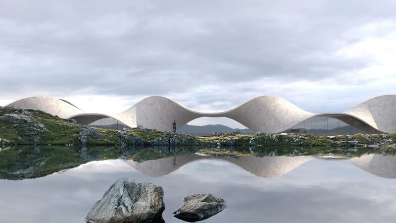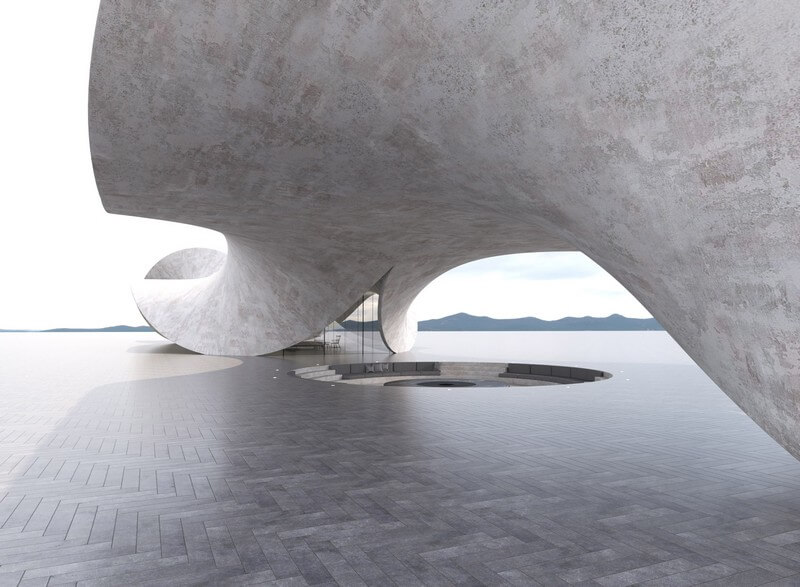 Designer Antony Gibbon has visualised a conceptual house called Twine, which sits under a wave-like piece of concrete within a landscape of rolling hills. Gibbon conceived Twine as a twisting concrete structure, which reflects the hills surrounding as a “series of organic forms”. It takes its name directly from the word Twine, which means to twist strands of material together, or to wind round something.