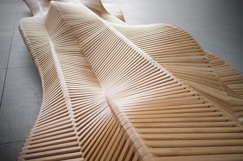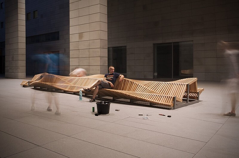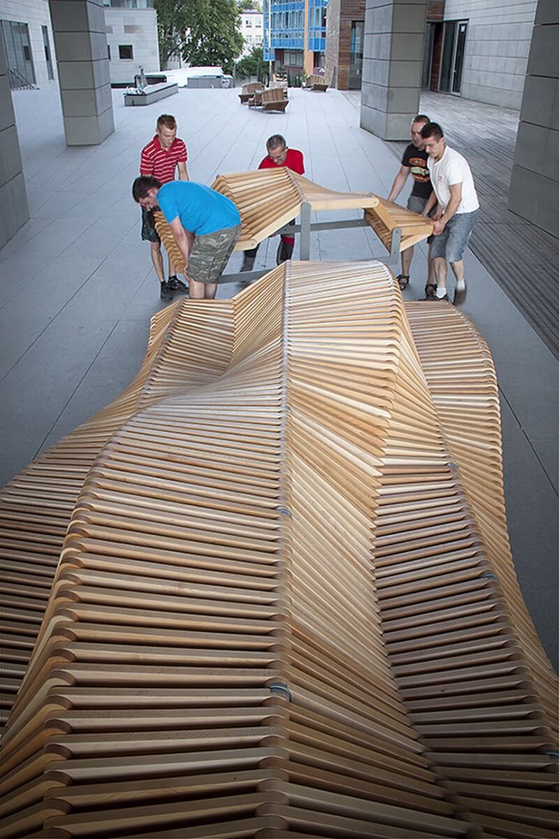Architect Piotr Zuraw has designed a bench named uiliuili, as part of the Wroclaw City Furniture Project. The bench was constructed by the University of Wroclaw in Poland.