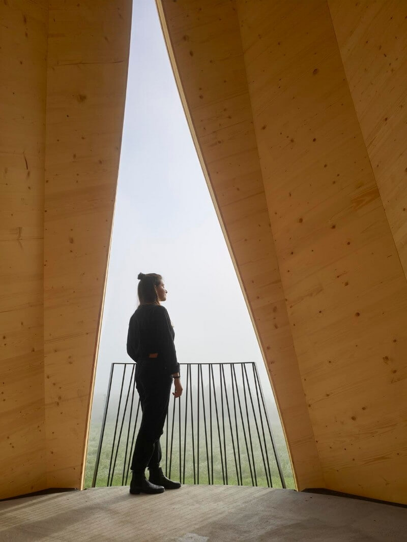 The technology of self-shaping manufacturing for solid timber boards and the rapid adaptability of the process to different curvatures open up new and unexpected architectural possibilities for thin shell wood structures, using a sustainable, renewable, and locally sourced building material. The Urbach Tower is the very first implementation of this technology on building-scale, load-bearing timber parts.