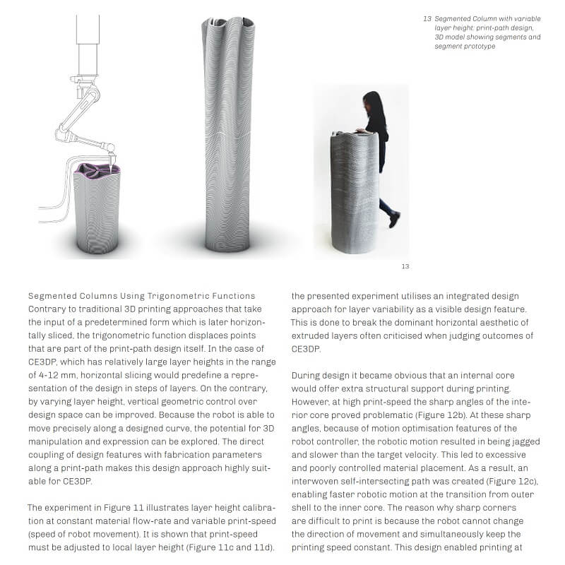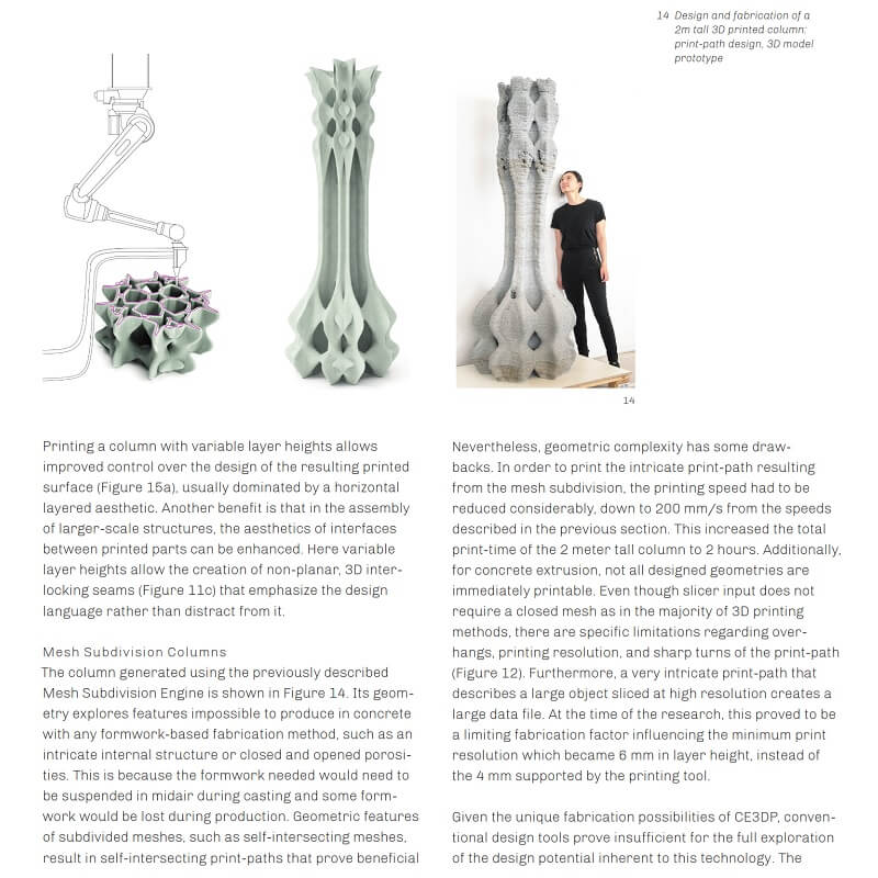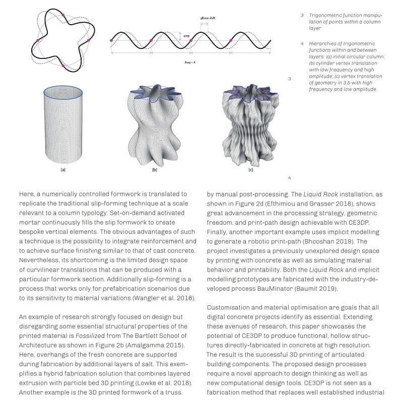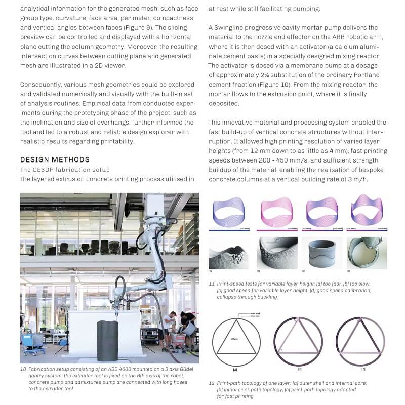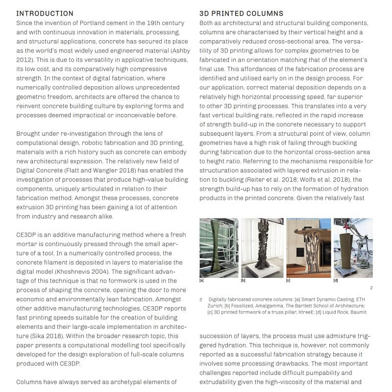 This paper by Ana Anton, Angela Yoo, Patrick Bedarf, Lex Reiter,Timothy Wangler and Benjamin Dillenburger presents a customised computational design tool developed for exploring the novel design space of Concrete Extrusion 3D Printing (CE3DP), enabling a reinterpretation of the concrete column building typology.