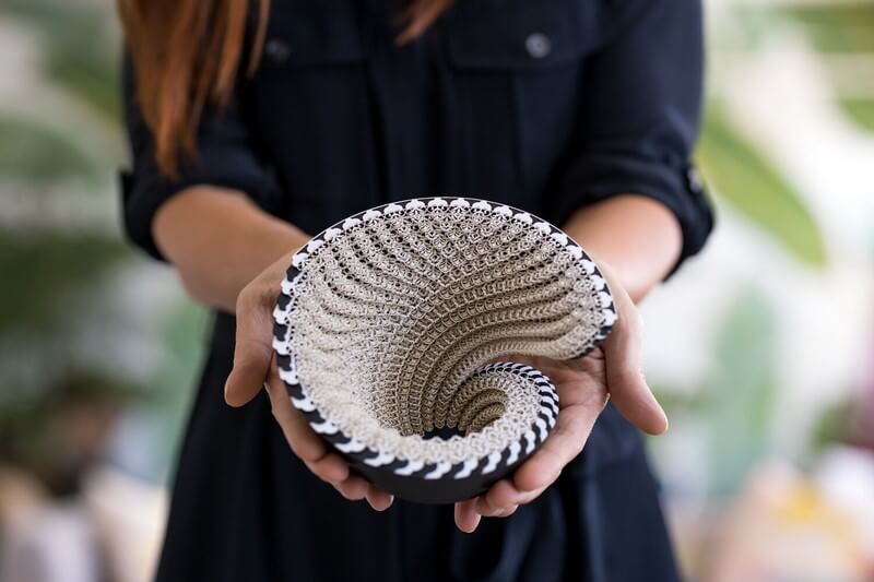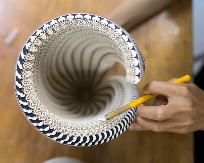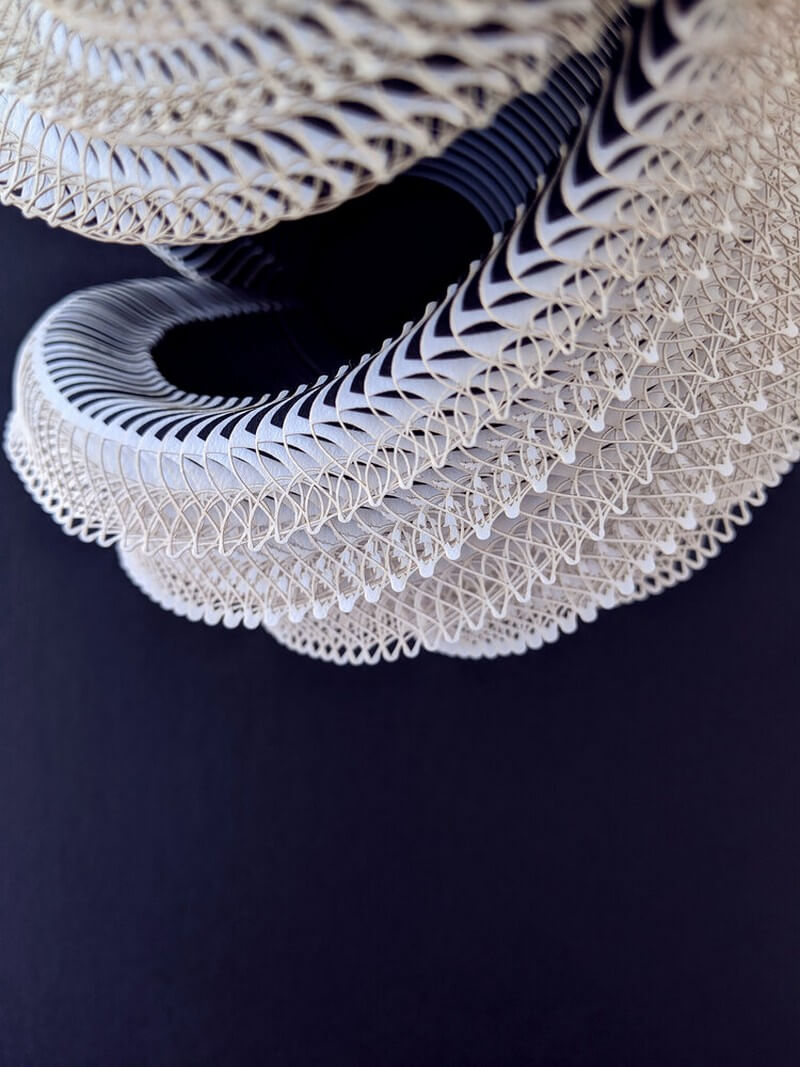 She wanted to explore the notion of a traditional vessel (typically intended to be utilitarian and simple) and augment and contrast that by introducing abstract structural modifications, complexity and detail achievable through algorithms and computational geometry.