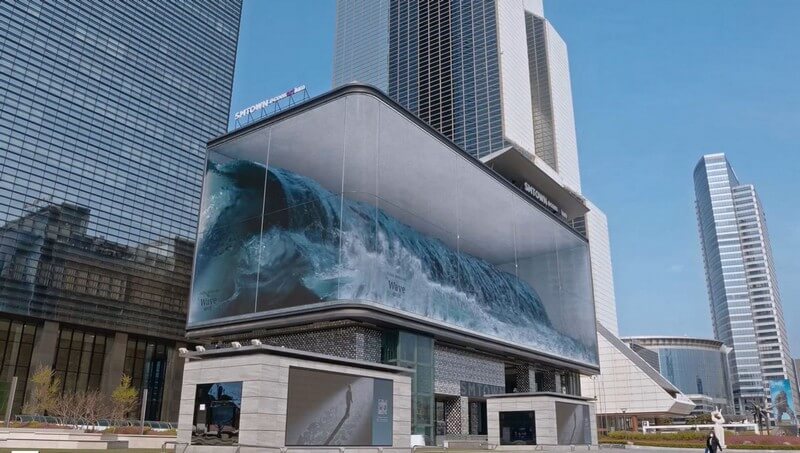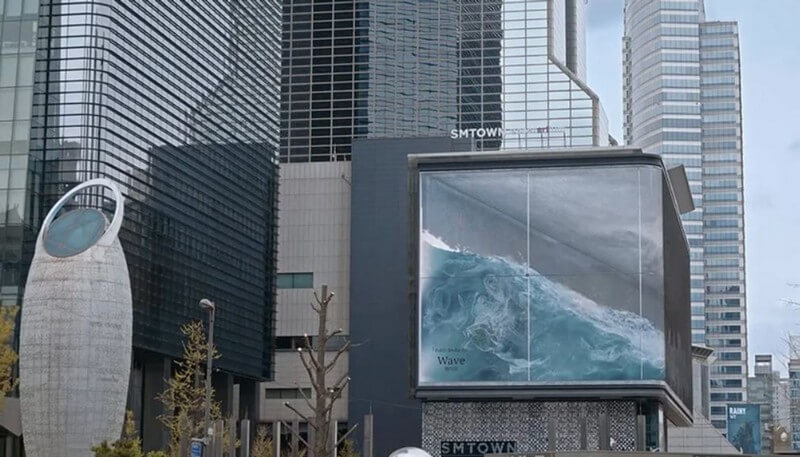 Their first case of IP licensing, ‘WAVE’ with anamorphic illusion has been successfully revealed on a magnificent DOOH of COEX K-POP SQUARE, the largest & high-definition outdoor advertising screen in S.Korea at 80.1m (w) x 20.1M (h).