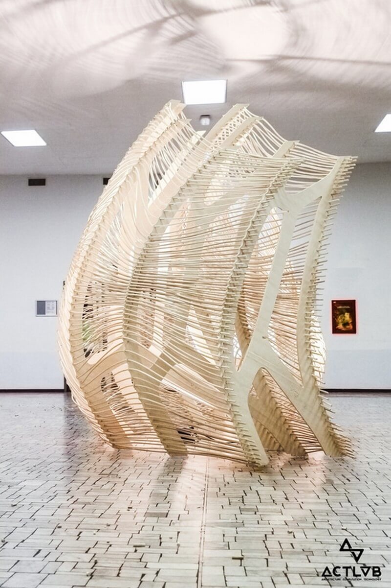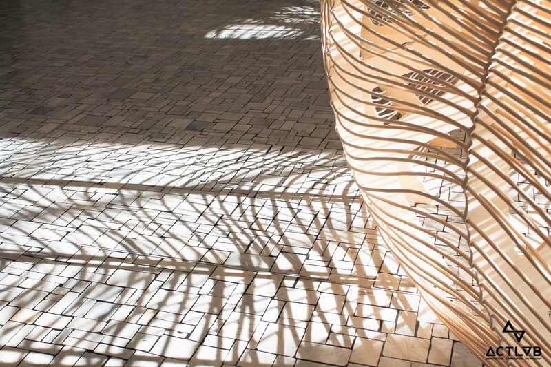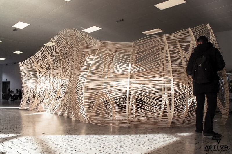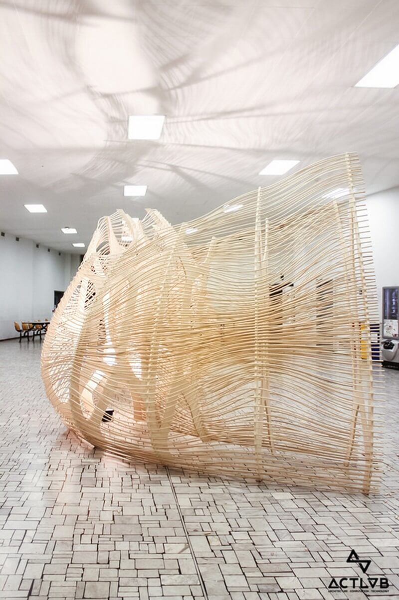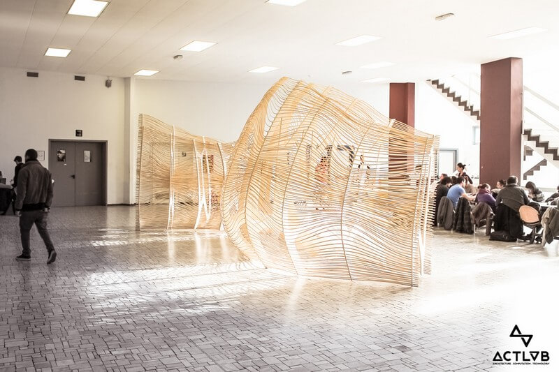 Weaving Enclosure is an experimental installation developed by ACTLAB in 2014 and a synthesis of a research on the emergent properties of weaving material system in architecture.