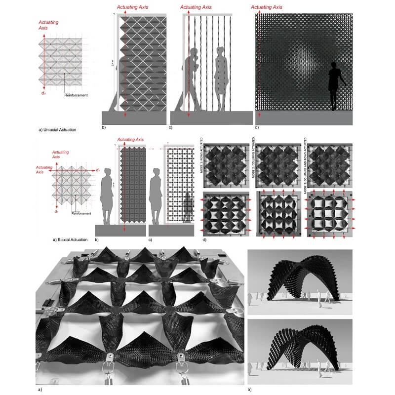 These surfaces can be used in architectural applications such as facades, shading mechanisms, and interior partitions where performative qualities are desirable.