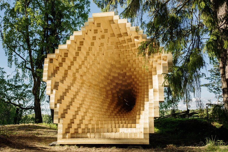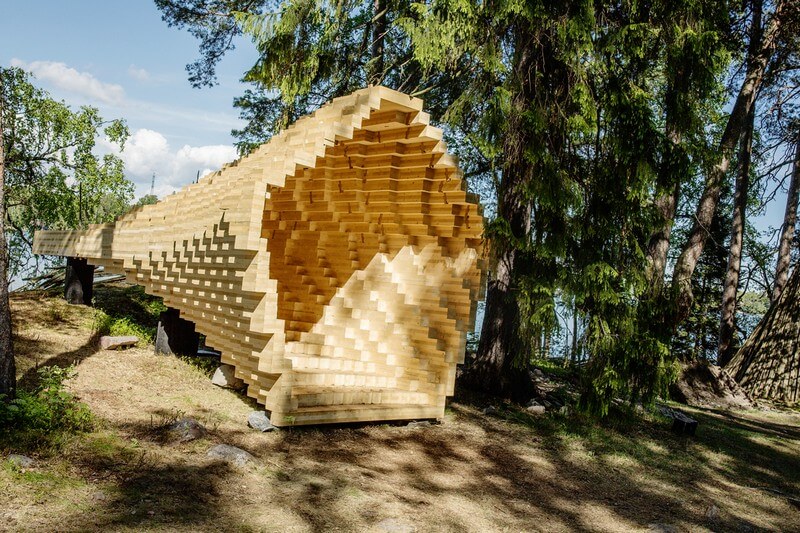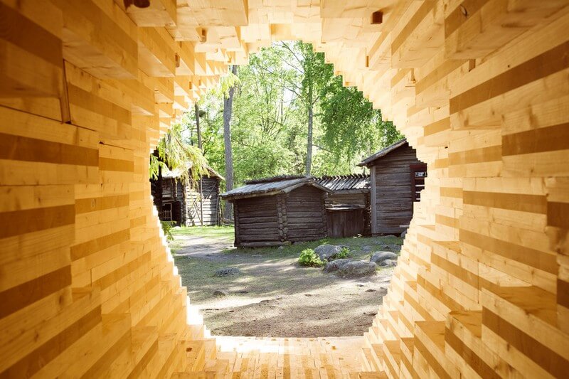 An international team of architects and fine carpenters in collaboration with the Finnish National Museum brings modern architecture into the Seurasaari open air museum in Helsinki, Finland, for the summer of 2017. Y was erected in the historical Niemelä Tenant Farm courtyard.